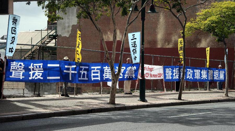 ![]() 布里斯本中国城声援退党大潮的横幅 |
