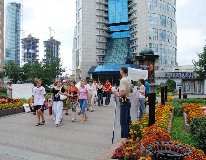 法轮功学员打出的横幅吸引了很多从附近地铁站出来的行人,他们中有国家杜马(议会)的工作人员,有俄罗斯国家科学院的教授,还有大学生和一些退休人员。这些人都没听过法轮功真相,看了横幅和其它资料后,大多数人都对中共迫害善良百姓的恶行表示愤慨,并签名支持法轮功学员反迫害。