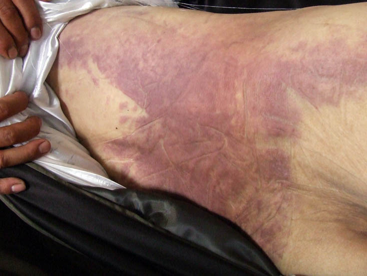 ![]() 李恩英遗体上的被迫害留下的伤痕 |