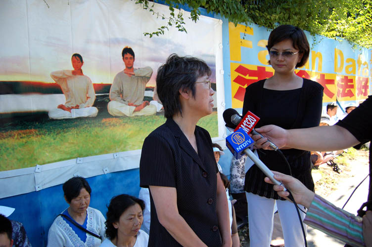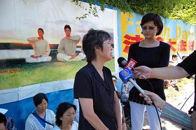 ![]() 法轮功发言人SUE在接受采访 |