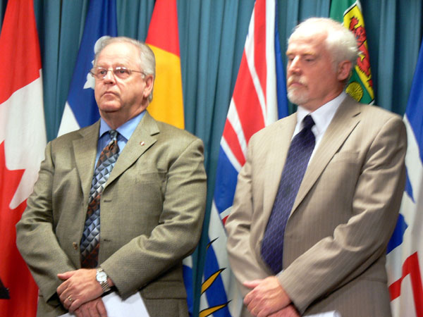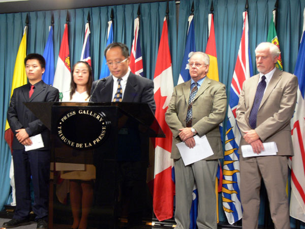 ![]() 大赦国际加拿大主席阿里克斯•奈夫(右)和新民主党国会议员韦恩•马斯通(左)要求总理向胡锦涛提中国人权问题,并停止迫害法轮功。 |