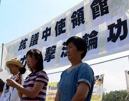 二零零七年八月二日清晨,三名亚裔男子在温哥华的中领馆前持枪恐吓、暴力殴打法轮功学员张春雨,并毁坏法轮功学员和平抗议的站点。