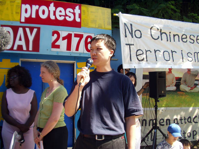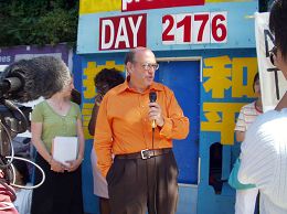 张春雨表示,要想知道谁是幕后凶手很简单,就是那些最不希望法轮功学员在这里抗议的人。张春雨说他不会被吓倒,他会继续在这里抗议。