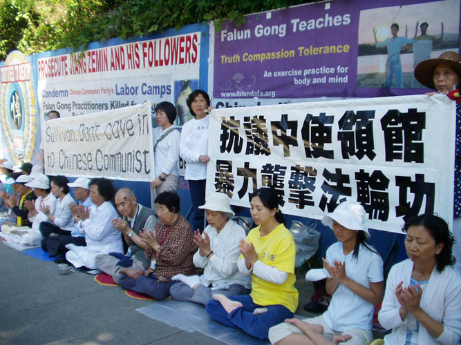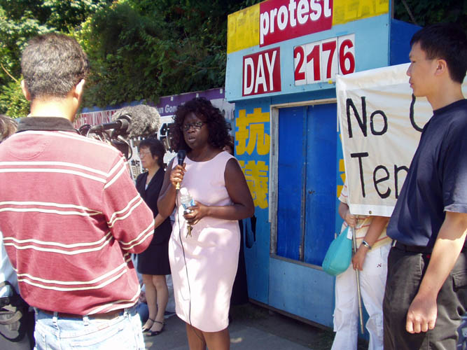 法轮大法学会代表在会上宣读了声明。声明说,几年来,在加拿大境内对法轮功学员的攻击、恫吓和骚扰多有发生。这些事件经常直接牵涉中使馆和领馆,或牵涉直接由中共官员指挥的社区中的居民,或由中共外交使团散布的对法轮功的仇恨宣传所致。