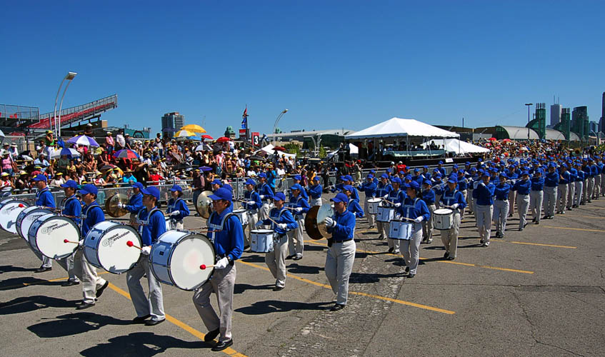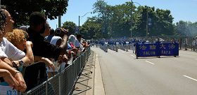 乐团成员王洪敏对记者说:“今天的游行真是人山人海,我们参加完游行后,就在人海中发法轮大法的真相资料,对着匆匆而过的人流说:‘Falun Dafa is good!(法轮大法好!)’人们都纷纷的接资料,后来我都忙不过来,我干脆就让人们自己拿我捧在手上的资料了。有人想详细了解情况,我就告诉他们资料上的网站地址。”