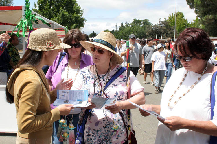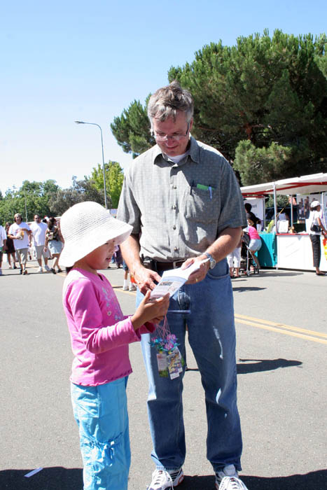 两天来,许多佛利蒙市的法轮功学员参加了讲真相活动。星期六,赵女士带着两个女儿一早就来到了摊位。她八岁大的小女儿Catherine手中拿着真相资料不停的在向游客讲着真相。遇到游客提出的比较难回答的问题,她就会向妈妈请教,然后再向游客讲。很多游客都耐心的听她讲真相。