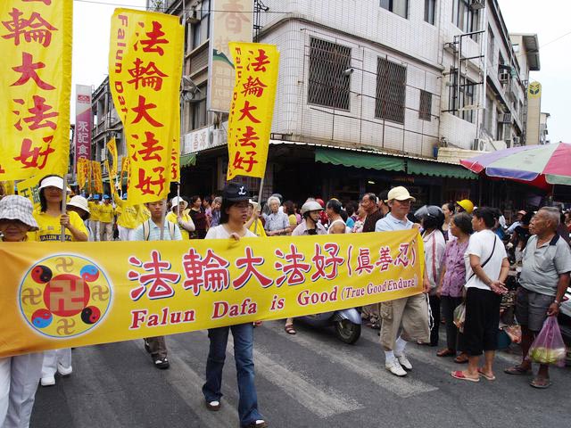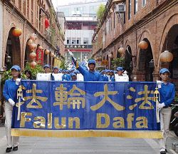 ![]() 法轮功游行队伍经过最具金门文化特色的模范街 |