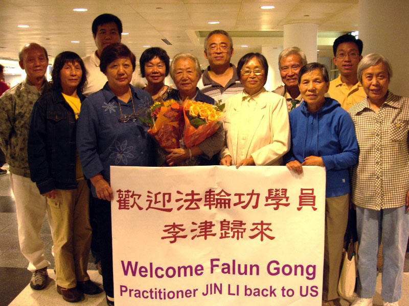 ![]() 在美国国会议员和法轮功同修的帮助下,李津安全返美 |