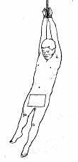 邵承洛绝食近4个月后,只剩下皮包骨,屁股只坐了几天就破皮了,最后就烂的发黑了。不知多少个夜晚邵承洛遭受酷刑折磨,一天夜里邵承洛在裂骨的痛中醒来,发现恶人把一只凳子四腿朝上,邵承洛被绑在倒过来的凳子腿上,屁股烂肉疼痛难忍。恶人又把邵承洛头猛压抵(住)两腿,那木凳窄小放不开两脚,那骨头如同断了的痛。恶人们见邵承洛不屈,又拿出几根圆腊木直径5公分,长有40公分左右,放在地上,把他按着促使膝关节跪在上边。又拿一根圆木压在邵承洛腿后弯上边,恶人们用力下压。一个恶人又拿了一块如透明香皂大小的木板,在邵承洛肋骨上用力压住旋扭,恶人们又把邵承洛架着坐在床边,腿下垂,用电烙铁在两腿的膝关节下与踝关节上共烙了四处。