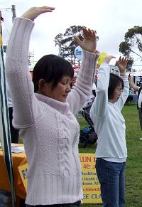 ![]() 法轮功学员在瑞得市水上竞赛节上洪法 |