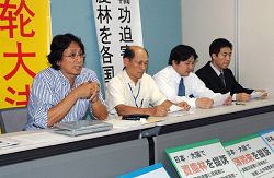 ![]() 德永信一律师(左)和原告等在记者招待会上发言 |
