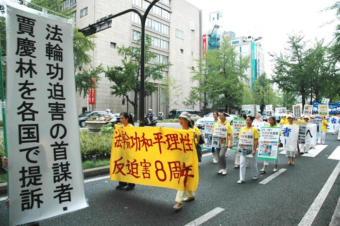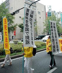 十四日下午一时,两名原告和代理律师德永信一以及日本法轮大法学会会长鹤园雅章来到大阪地方裁判所递交诉状。诉状指出,在由中共前国家主席江泽民发起的对法轮功的迫害中,现任中共政治局常委的被告贾庆林,在担任北京市市委书记时成为江泽民迫害法轮功的共犯和急先锋,直接指挥了对法轮功学员的人权迫害,并对发生在北京市的因酷刑而被迫害致死的四十九名法轮功学员之死负有直接的责任。