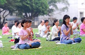 一九九八年五月沈阳市法轮功学员集体炼功场面。
