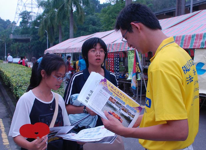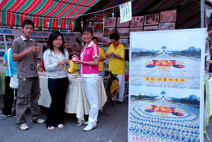 台湾各大学每年一到秋季开学的时候,校园里各社团都展开活动,希望招徕新生加入各自的社团。二零零七年九月十八日中正大学的社团联展里,法轮功社团设置了展位,桌上摆着李洪志老师的著作及大法简介,供学生自由取阅,广受新生瞩目。
