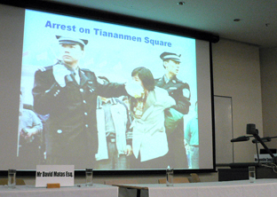 薄熙来到达澳洲即被法轮功学员当面递诉状