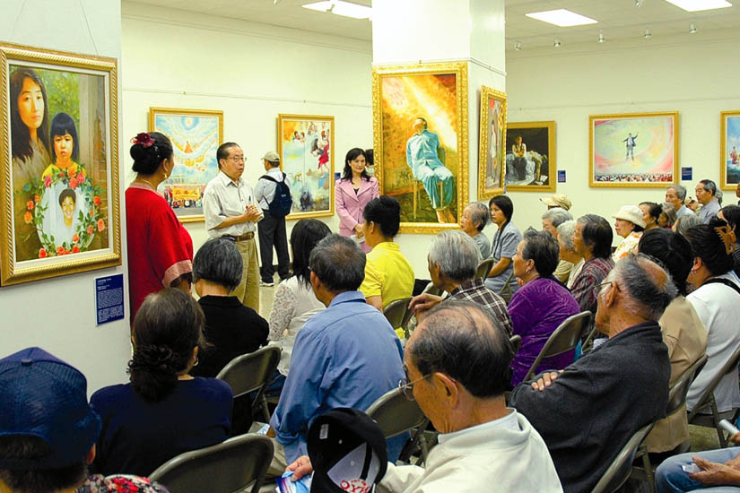 接下来几个小时,来参观的华人观众络绎不绝。一位元邵先生告诉记者,他来美国已经五十多年,从来就没有相信过中共所说的谎言,他的爷爷就是在中国大陆被中共迫害致死的。从画展中,看到法轮功学员在巨大的承受中所做出的反迫害努力,很是感动,很想做些什么帮助制止迫害。