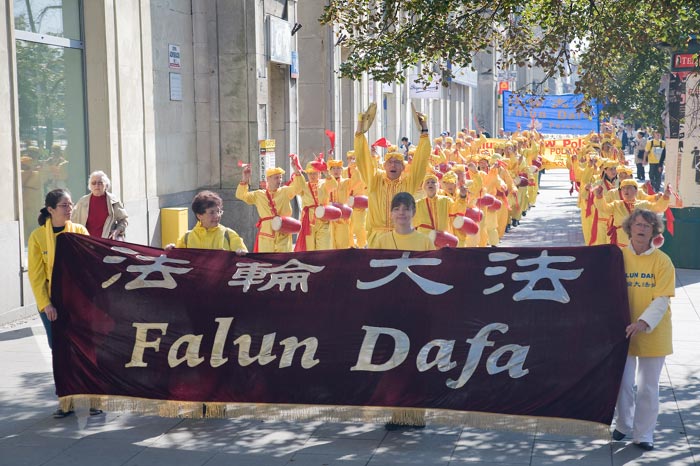 中午法轮功学员开始进行游行,由腰鼓队开道,仙女队随后,共分成法轮大法洪传世界、法轮功学员反迫害、揭露中共活体摘取法轮功学员器官罪行,以及广传九评和声援退党大潮等几大方阵。游行队伍经过华沙最热闹的大街,最终抵达中使馆,并在那里举行了集会。欧洲议会副主席麦克米兰•斯考特为波兰的法轮功集会发来了贺信。
