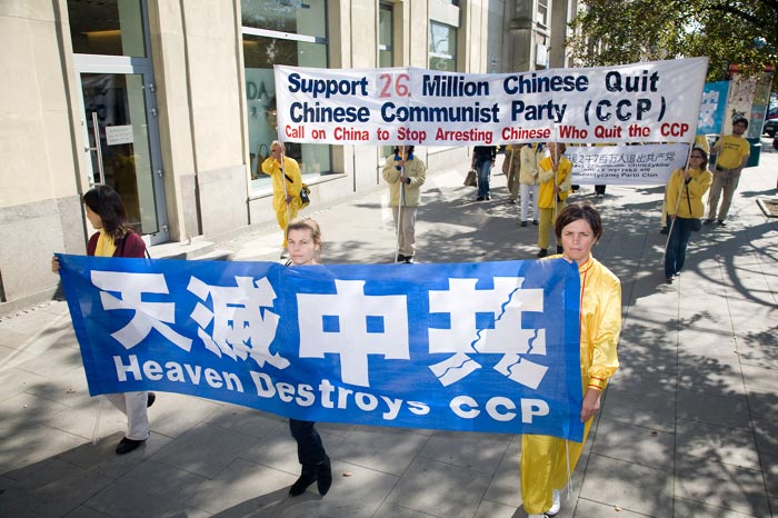 ![]() 游行队伍声援二千六百万退党,传递“天灭中共”的信息 |