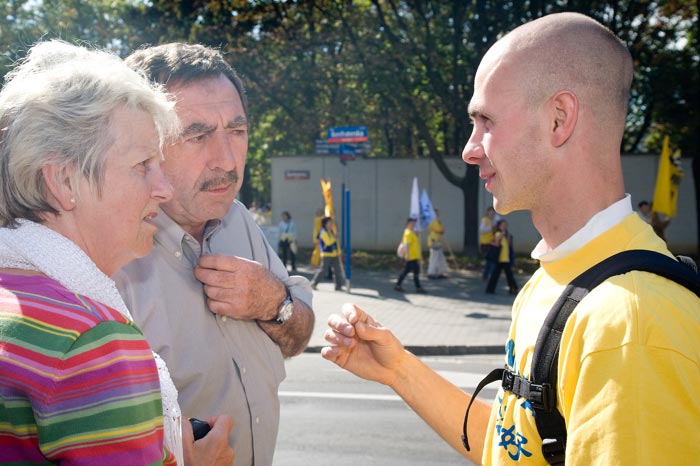 ![]() 波兰民众认真听法轮功学员讲真相 |