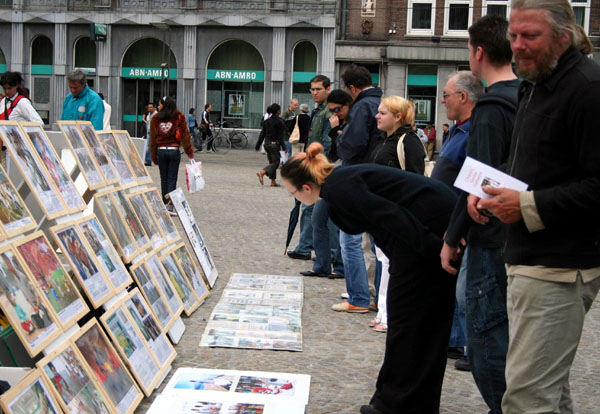 ![]() 二零零五年三月二十日下午,荷兰法轮功学员在阿姆斯特丹的水坝广场(Dam Square)举办反酷刑展,揭露在中国江氏集团对法轮功学员的残酷迫害。 |
