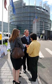 法轮功学员欧洲议会总部前呼吁制止中共迫害(图)