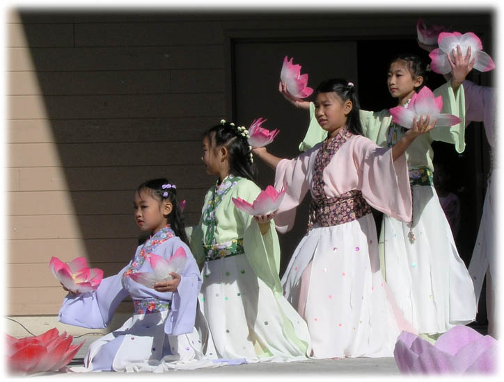 今年,参加美韩中文化日活动的民众第一次看到了由法轮功小弟子表演的节目。小弟子一出现,清新脱俗的服装就很抢眼,一位华人男士脱口问道:“啊,好漂亮,这是什么服装?”随后,小弟子的演出更是展示了遵循“真善忍”的孩子们纯洁、美丽、而又善良的风貌,让观众们为之动容,赢得了热烈的掌声。