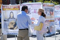 ![]() 路人在图片展前了解在中国还在持续发生的迫害 |