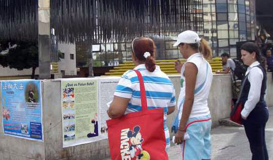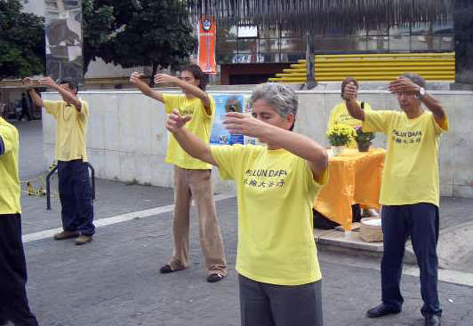 【明慧网二零零七年九月三十日】从二零零七年九月二十日(星期一)到二十四日(星期五),每天下午两点到四点,委内瑞拉法轮功学员在加拉加斯(Caracas)的Bryon Plaza广场举行讲真相和演示功法活动。