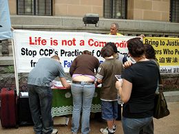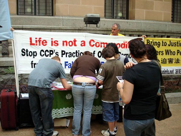 ![]() 人们纷纷签名谴责中共迫害法轮功 |