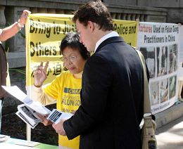 有个十分同情法轮功学员遭遇的男子则询问学员是否认识当地名人政要,他希望去拜访他们,告诉他们法轮功所受到的残酷迫害。