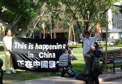 二零零七年八月二十八日,在位于特拉维夫的中共驻以色列使馆对面,以色列各界人士举行了集会,声援两千五百万中国民众退出邪恶中共的党团队组织。