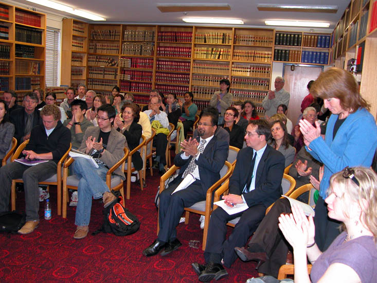 两场讲座吸引了包括政府官员、大学师生、及当地关心中国法律与人权的民众。在澳大利亚国立大学的讲座,由国际公共法中心主任鲁宾斯坦教授(Kim Rubenstein)主持,在法学院图书馆会议室进行。会场爆满,许多听众不得不站在后排和门口听演讲。在澳大利亚首都领地立法委员会的讲座,由立法委员佛斯基(Deb Foskey)主持。