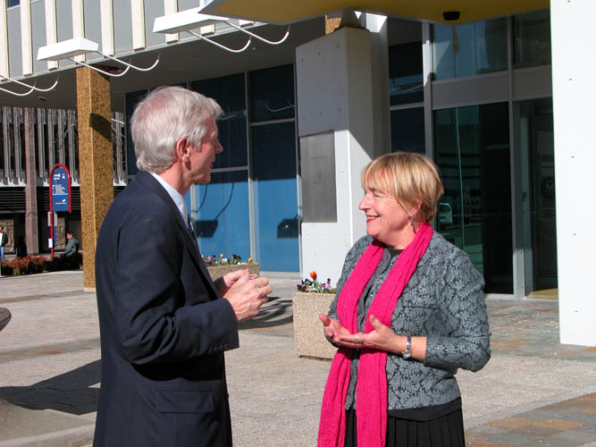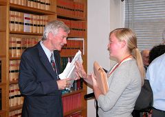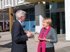 ![]() 大卫•乔高和立法委员佛斯基(Deb Foskey)交谈 |