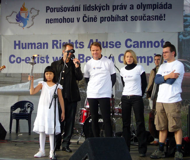 同时出席人权圣火活动的还有众多捷克籍的奥运会奖牌选手和多位影视界名人,十几个乐队在现场用音乐表达了他们对中国人权的支持,从中午十二点开始的音乐会吸引了广场上的捷克当地人和来自世界各地的游客。