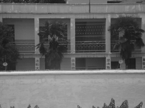 图中这些照片是二零零七年八月三十日拍的。从照片可以看出,现在黑窝的二层楼的表面墙壁上面刷白,下面三分之一处刷成草绿色,黑窝的围墙没刷完。黑窝装修以后,给不知真相的人一种“焕然一新”的景象,而里面却上演着迫害善良人的残忍的丑剧。