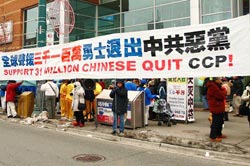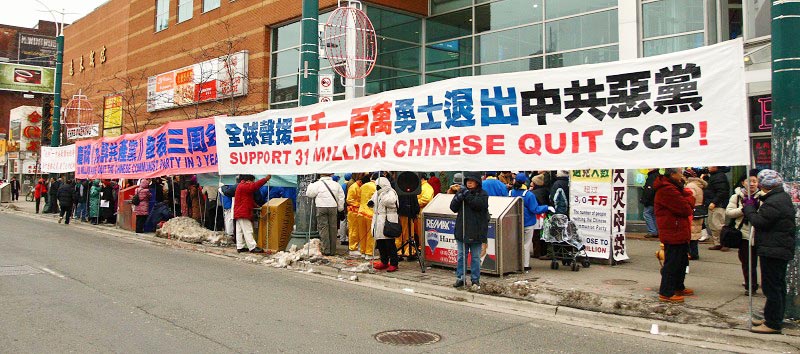 二零零七年十二月三十日,加拿大多伦多中区唐人街拉开五城联手“声援三千万退党大潮,迎接二零零八年全民觉醒”的序幕。声援集会中有近十位来自不同职业的人士踊跃发言,他们的演讲中谈到《九评共产党》这本理性剖析中共邪党本质、唤醒世人良知善根的书;每一个三退数字背后的故事;三退大潮突破三千万给予西方社会带来的反响;三千万勇士退出中共体系,其人数与加拿大总人口相当;从东欧及前苏联共产体系解体的过程及上世纪末共产体系顷刻间彻底解体看今天“天灭中共“的必然。