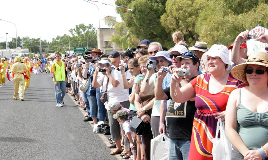 从沿途住家、商店和从其它地区来的观众达上万人。游行中处处可听到对法轮功团体的赞誉声。