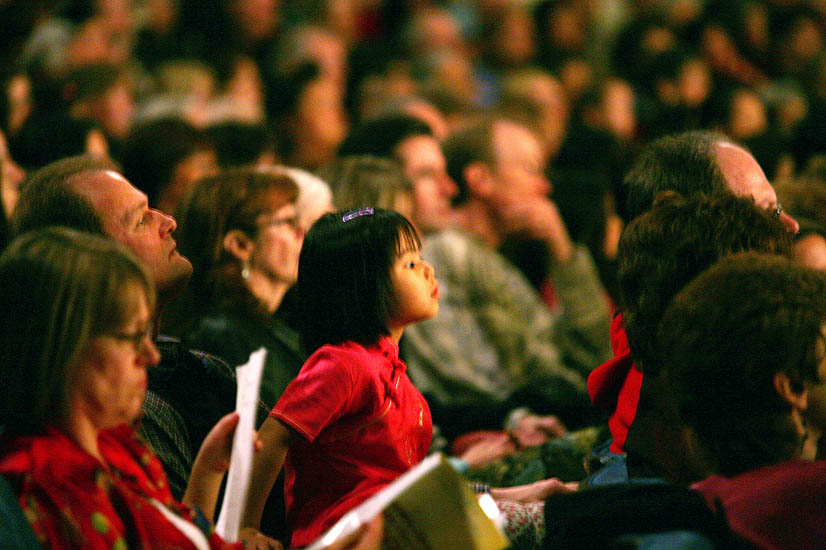 ![]() 入神观看晚会的观众 |