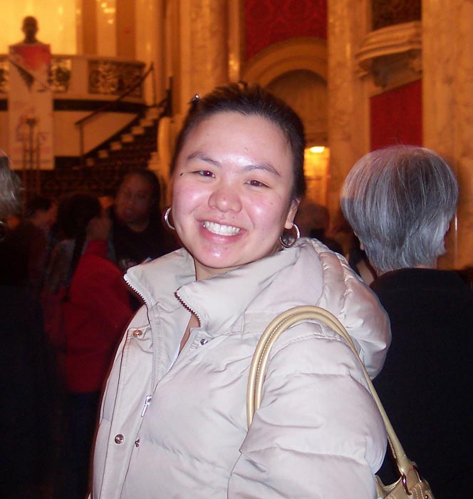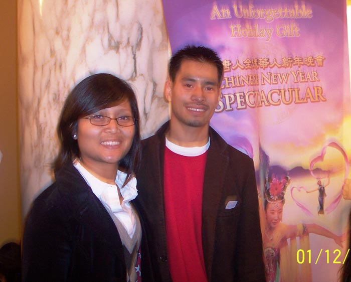 ![]() 亚裔观众Chan和女朋友一起来观赏神韵演出 |