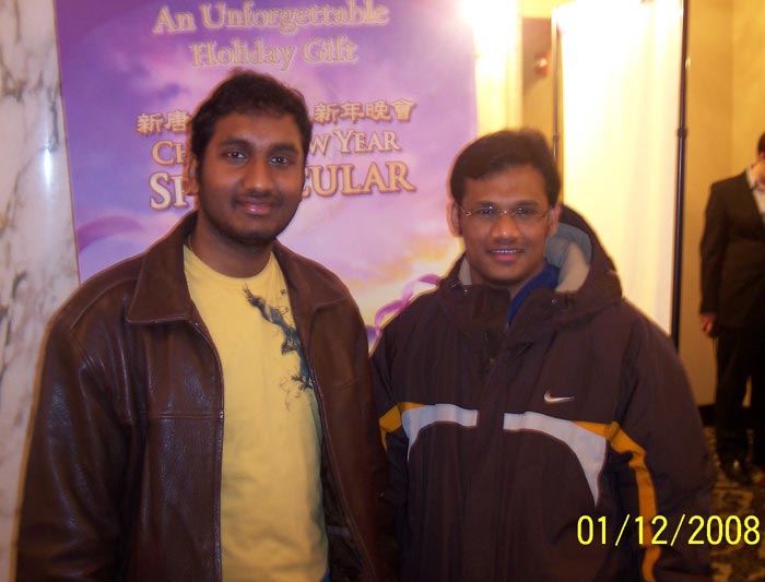 刚从德克萨斯州立大学达拉斯分校毕业获得生物技术硕士学位的Veejay到波士顿访问表兄Prathyush Gorantala,并争取在这里找到一份工作,这次随表兄一起来观赏新年晚会。他说,“演出非常棒,非常精彩,我非常喜欢。真是难以想象,二十七个舞蹈演员在同一舞台上表演的如此协调一致,美妙极了,明年我们肯定会再来看。”