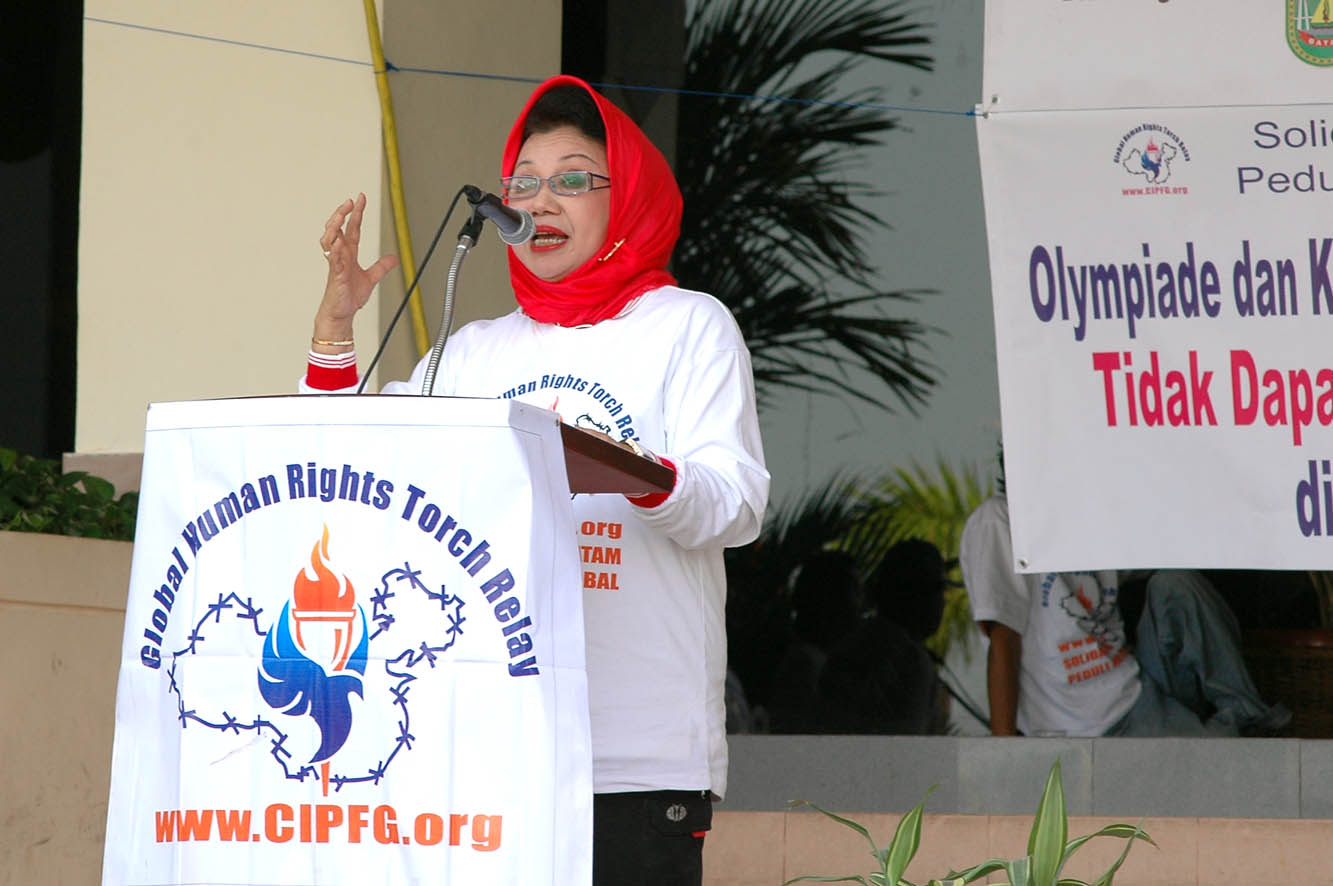 ![]() 丽耀(Riau)群岛首长夫人及当地政要出席在巴淡中心举行的「人权圣火」抵达巴淡岛仪式 |