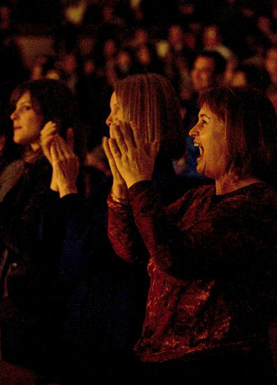![]() 演出结束时,观众都站起来鼓掌。 |