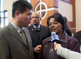 ![]() 马丁•路德•金博士的女儿在接受采访 |