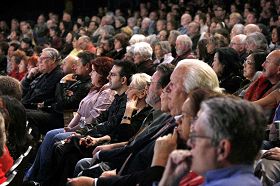 二零零八年在多伦多上演的新唐人新年晚会,每每散场后,索尼中心剧场大厅里的观众依然神采飞扬、热情不减。