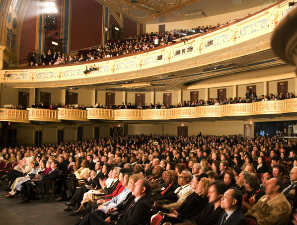 ![]() 底特律观众专注的欣赏神韵演出 |