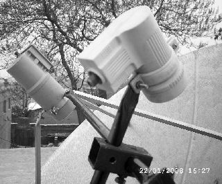 最近长春地区成功用1.5m和1.2m正馈锅接收到w5新唐人电视和亚太2R卫星电视,实践证实正馈锅完全可以替代偏馈锅,而且安装成本要比偏馈锅少很多,操作容易,适宜推广。我们尝试了两种组合方法,都可以收到w5新唐人电视和亚太2R的电视节目。