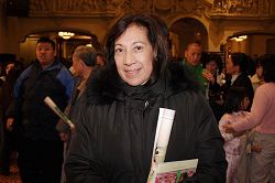 她一月二十四日才从中国大陆出差回来。晚会触及到了她的心灵。她说:“晚会发出的信息是,要团结,不要放弃希望,绝不放弃,不断的呼吁。