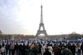 ![]() 以法轮功欧洲天国乐团打头阵的“巴黎游行节”吸引无数观众 |