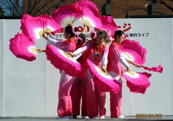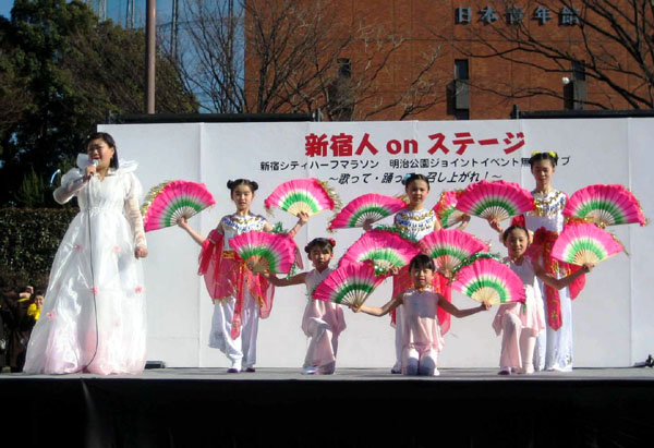 “请问,你们都在什么地方活动?什么时候还可以再看到你们的演出呢?”主持人转向天资舞团成员发出询问,舞团负责人回答道:“我们经常在新宿一带活动。其实啊,我们的表演远不如赫赫有名的神韵纽约艺术团的表演。如果想看正宗表演的话,正好下个月,也就是二月中旬,神韵艺术团将到东京新宿巡回演出,请大家不要错过机会呦。”