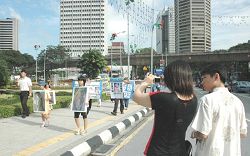 一路上,退党服务中心的义工发《九评》及相关资料给路人;市民和马路上的司机都缓下来观看。有些游客尤其是中国游客都纷纷来拍摄和了解情况。